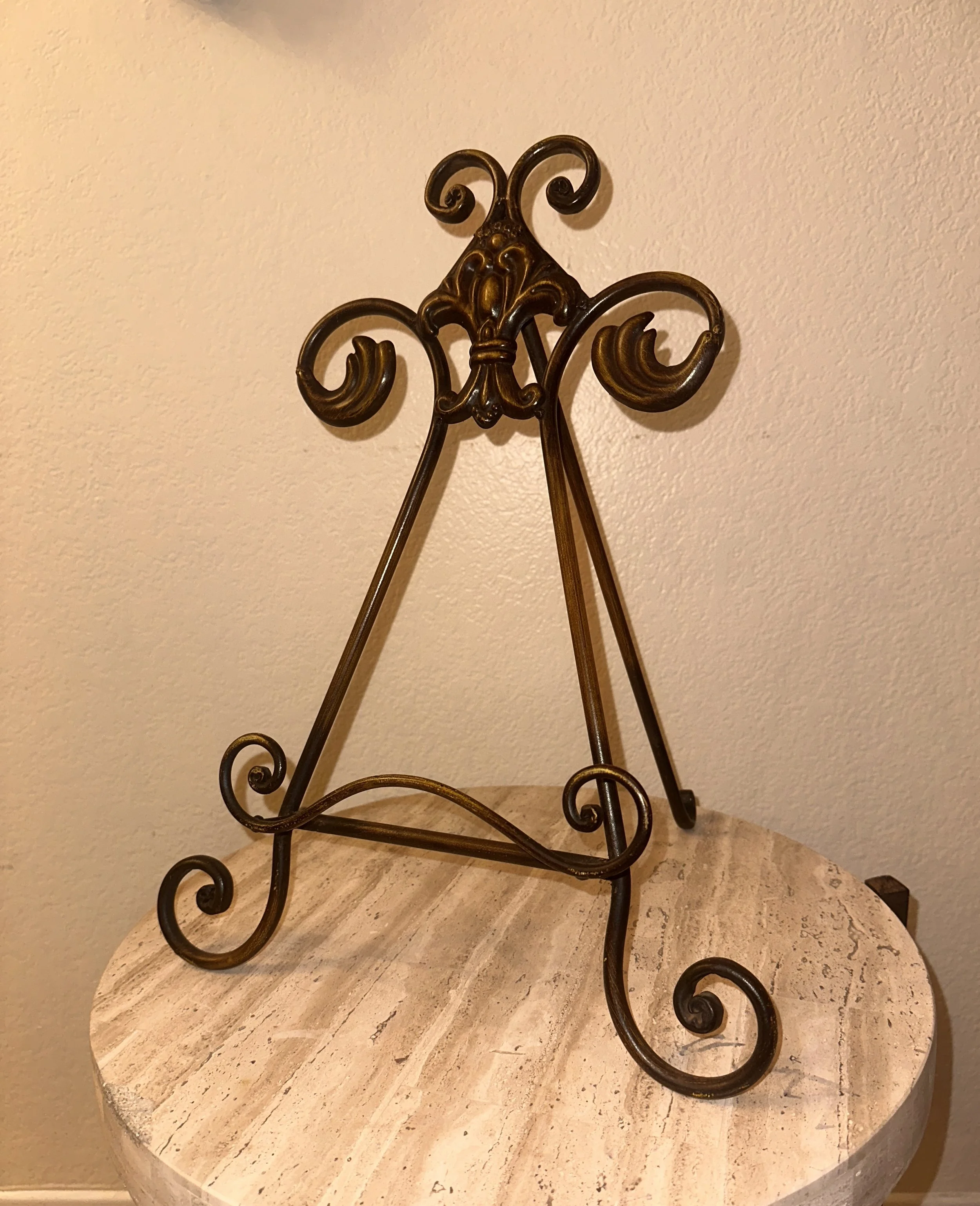Iron Tabletop easel (1 count) ($7) (Can hold a sign up to 16 in x 16 in)